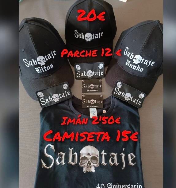 Ofrecemos una variedad de productos para los fans de SABOTAJE Bizkaia Metal. Encuentra camisetas con diseños únicos, los CDs de nuestros álbumes, gorras para lucir con estilo y otras sorpresas que iremos añadiendo. Todo nuestro merchandising está pensado para ayudarte a apoyar a la banda y mostrar tu pasión por el heavy metal.